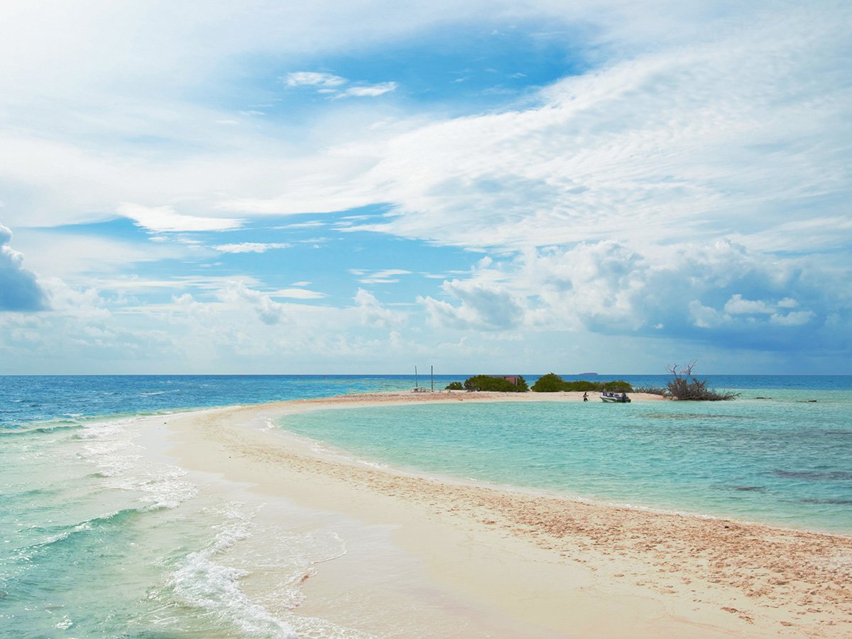 wyspy obsypane białym piaskiem, z luksusowymi hotelami i domkami na wodzie.