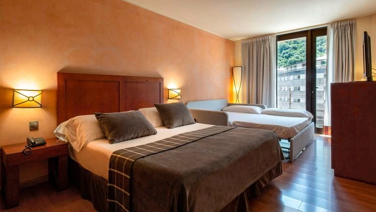 Elegancki i komfortowy hotel w centrum Andorra la Vella, w otoczeniu gór, to doskonała propozycja na rodzinny wyjazd nie tylko dla wielbicieli białego szaleństwa, ale również uroków stolicy. Na wyciągnięcie ręki są tu butiki, bary i restauracje, a do wyciągów można wygodnie dojechać skibusem. W hotelu przestronne, funkcjonalnie urządzone pokoje, również dla rodzin z dziećmi. Dorośli powinni koniecznie skorzystać z centrum wellness z ofertą masaży – idealnego relaksu po dniu na stoku. Doskonały serwis, miła obsługa i zachwycające widoki gwarantowane!