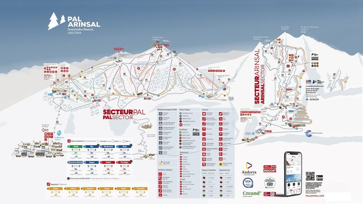 nielimitowany wstęp do 2 ośrodków narciarskich Pal-Arinsal oraz Ordino-Arcalis, łącznie ok. 90 km tras, dodatkowo jednodniowy wstęp do ośrodka narciarskiego Grandvalira