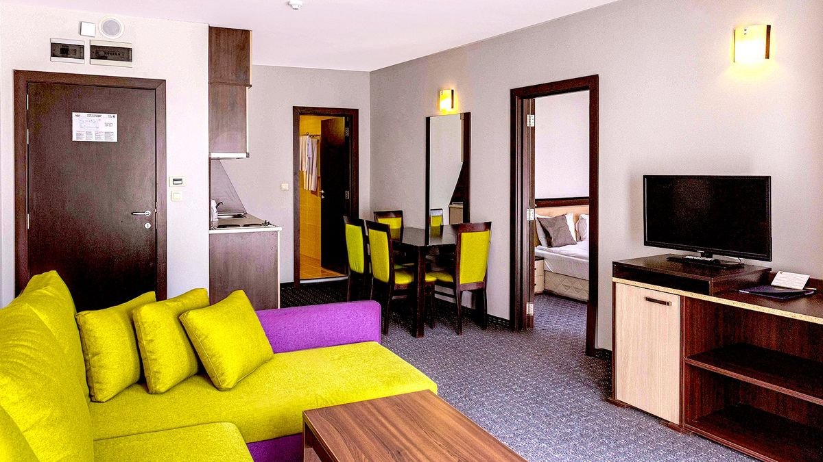Wielbiciele białego szaleństwa przybywajcie - to świetna miejscówka na ferie z rodziną lub grupą przyjaciół! Blisko stąd do stacji gondoli i centrum, więc można szaleć na nartach i korzystać z uroków pięknego zimowego kurortu - Banska. Hotel jest elegancki i komfortowy, wyposażony w udogodnienia idealne na après-ski. Wypocznij w wygodnych i przestronnych apartamentach z oddzielną sypialnią, a po dniu na stoku zjedz pyszną obiadokolację w hotelowej restauracji, usiądź w imponującym lobby i rozkoszuj się ciepłem kominka. Totalny relaks? Skorzystaj z oferty SPA z krytym basenem, saunami i szeroką ofertą masaży i zabiegów. Urlop z dziećmi? Na najmłodszych czeka miniklub, w którym organizowane są wesołe animacje i pełen rozrywek pokój gier. Nie trać czasu i zaplanuj swój zimowy urlop w Bułgarii już teraz!