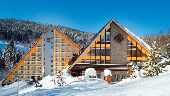 To doskonała baza wypadowa do zimowych szaleństw na śniegu, jak i wędrówek po malowniczej okolicy. Liczne atrakcje dla najmłodszych pozwolą na beztroski wypoczynek również rodzicom – na miejscu czekają plac i pokój zabaw, animacje i basen kryty – niezależnie od pogody, nie będzie czasu na nudę. W hotelowych restauracjach można spróbować znakomitych dań, łączących górskie smaki z najnowszymi trendami, a pełen relaks gwarantuje dobrze wyposażone centrum spa. Nagradzany za wysoki poziom usług, zaprasza na wypoczynek w pięknej scenerii czeskiego Karkonoskiego Parku Narodowego, tuż przy stoku narciarskim!
