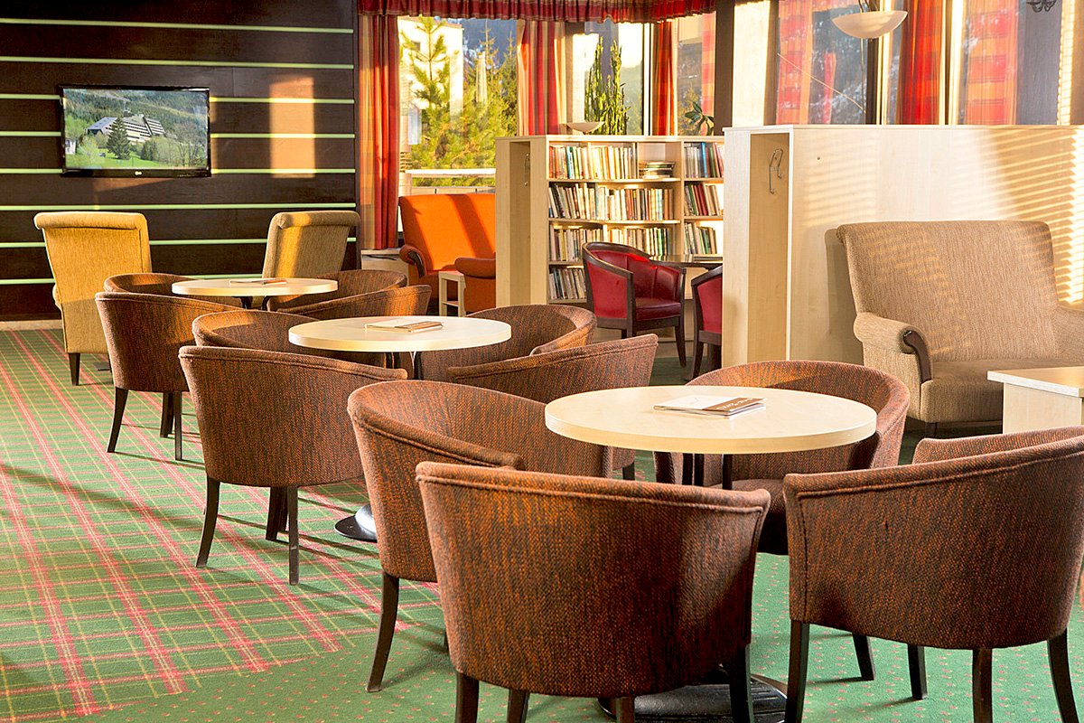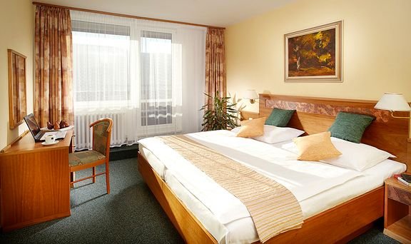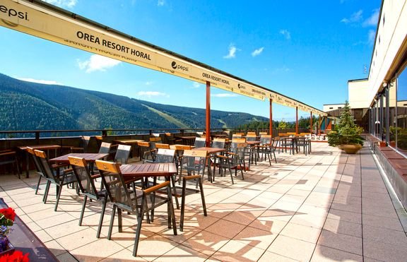 czterogwiazdkowy, 164 pokoje, 1 budynek, winda, 2 restauracje: Ski – dania w formie bufetu, śniadania, obiady i kolacje, Panorama – à la carte, kuchnia regionalna i międzynarodowa; na miejscu możliwość wykupienia obiadów (ok. 150 CZK/posiłek); bezpłatny internet bezprzewodowy; za opłatą: punkt internetowy, informacja turystyczna, pralnia, prasowanie, opiekunka do dziecka, parking (150 CZK/noc); zakwaterowanie od godz. 14.00, wykwaterowanie do godz. 12.00; akceptowane zwierzęta domowe (płatne: ok. 350 CZK/noc); akceptowane karty kredytowe: Visa, MasterCard, Diners Club, Amex.
