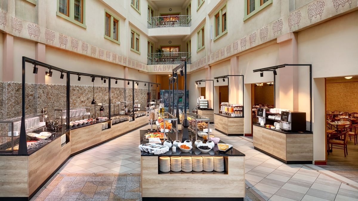 czterogwiazdkowy, należący do całorocznego kompleksu rozrywkowego i handlowego Centrum Babylon, 407 pokoi, 5 pięter, winda, całodobowa recepcja, 2 restauracje: Atrium – główna, dania w formie bufetu oraz à la carte i Nostalgia – à la carte, kuchnia włoska, kącik dla dzieci, lobby bar; taras słoneczny, kantor, przechowalnia sprzętu narciarskiego; centrum konferencyjne; bezpłatny internet bezprzewodowy; za opłatą: parking (150 CZK/doba), usługi konsjerża, usługa prania i prasowania; akceptowane karty kredytowe: Visa, MasterCard, Maestro, American Express, Diners Club.