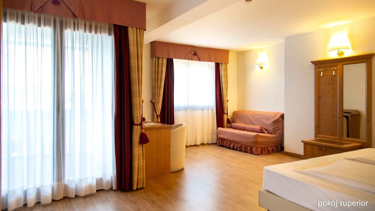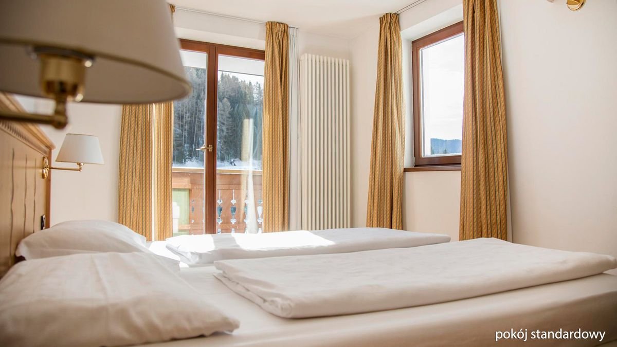 standardowy: 2-os., ok. 15 m², łazienka (wanna lub prysznic, wc; suszarka), internet bezprzewodowy, telewizor, telefon; balkon. ; superior: 2-os. (możliwość 2 dostawek), ok. 16 m², wyposażenie jak w pokoju standardowym; łóżeczko dla dziecka do 2 lat na zamówienie przed przyjazdem (płatne: ok. 10 EUR/dzień); balkon; pokój superior za dopłatą; ; rodzinny: dla maks. 6 osób (maks. 4 os. dorosłe), ok. 25-40 m², wyposażenie jak w pokoju standardowym; za opłatą: internet bezprzewodowy; łóżeczko dla dziecka do 2 lat na zamówienie przed przyjazdem (płatne: ok. 10 EUR/dzień); pokój rodzinny za dopłatą.