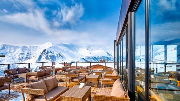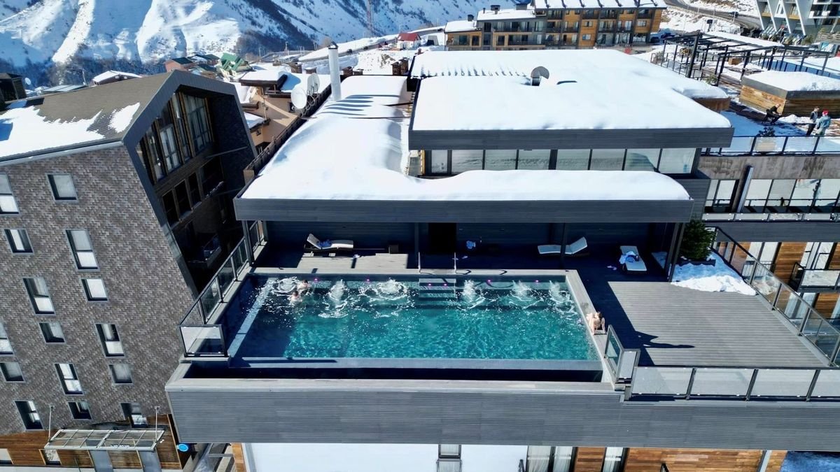 Zimowa przygoda zaczyna się tuż za drzwiami – w Gudauri Loft wyjdziesz z hotelu prosto na stok i od razu poczujesz prawdziwy klimat Kaukazu. Po dniu na nartach zanurz się w basenie na dachu, skąd rozciąga się widok na ośnieżone góry. Wieczorem spróbuj lokalnych smaków w restauracji lub wypij ulubiony koktajl na tarasie – tu wszystko smakuje lepiej. Nowoczesne wnętrza, górska atmosfera i narciarski luz sprawiają, że to idealne miejsce na aktywny, ale bardzo przyjemny zimowy wyjazd.