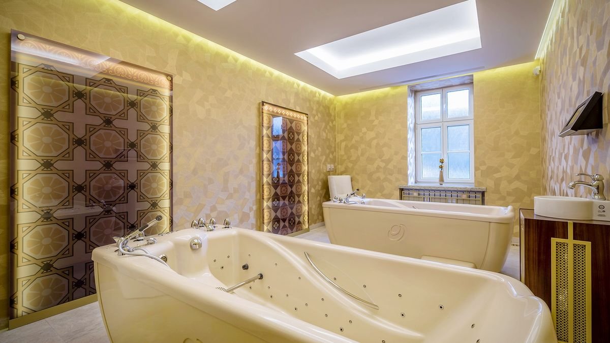 Królewski wypoczynek na Słowacji! Luksusowy hotel rekomendowany koneserom pałacowych klimatów i elegancji art déco. Budynek adaptowany na hotel pochodzi z końca XIX w. Wysmakowane wnętrza i komfortowe pokoje łączą walory magicznego stylu z początku ubiegłego wieku z najnowocześniejszymi technologiami. Jednak Royal Palace to nie tylko ekskluzywne pokoje. Na miejscu warto skorzystać z fantastycznego kompleksu basenów termalnych tuż przy hotelu, a także z wielu zabiegów rehabilitacyjnych i kosmetycznych. Zapraszamy do świata luksusu i elegancji w atmosferze minionych wieków.