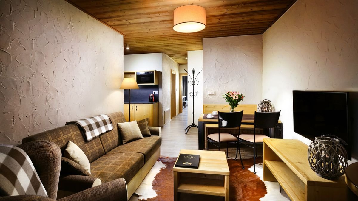 Niesamowity górski klimat, bliskość stoków i wyciągów narciarskich oraz przytulne apartamenty - to wszystko, czego potrzeba do udanych, aktywnych wakacji w zimowej scenerii. Do dyspozycji Gości jest parking i przechowalnia sprzętu narciarskiego. Zrelaksować można się w centrum wellness z zewnętrznym jacuzzi i sauną. Doskonałe miejsce dla osób ceniących prywatność i niezależność, chcących spędzić urlop pełen wrażeń i aktywności. Zapraszamy do malowniczej Słowacji!