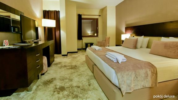 deluxe: 2-os. (możliwość 1 dostawki dla 1 lub 2 os.), ok. 28 m², ogrzewany, łazienka (wanna lub prysznic, wc; suszarka), internet bezprzewodowy, telewizja satelitarna, minibar (bezpłatnie napoje bezalkoholowe i 2 piwa w dniu przyjazdu; każde kolejne uzupełnienie dodatkowo płatne); widok na góry.