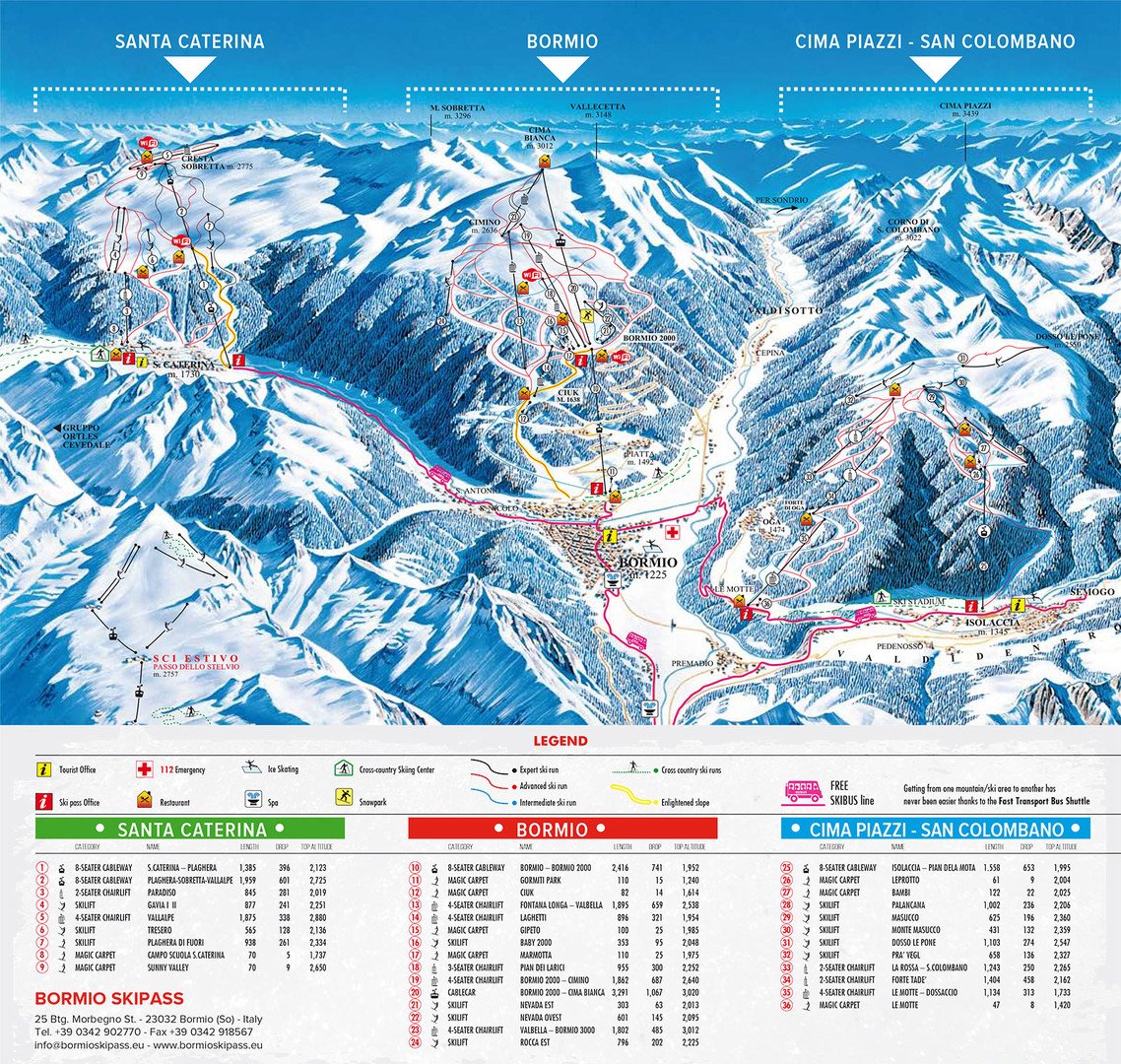 Alta Valtellina (Bormio, Santa Caterina, Cima Piazzi/San Colombano, Livigno):