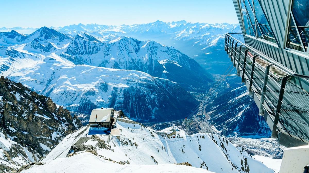 •ok. 700 m. od kolejki linowej Skyway Monte Bianco na szczyt Punta Helbronner (3466 m n.p.m.) z restauracją i tarasem widokowym na Mont Blanc (4810 m n.p.m.)