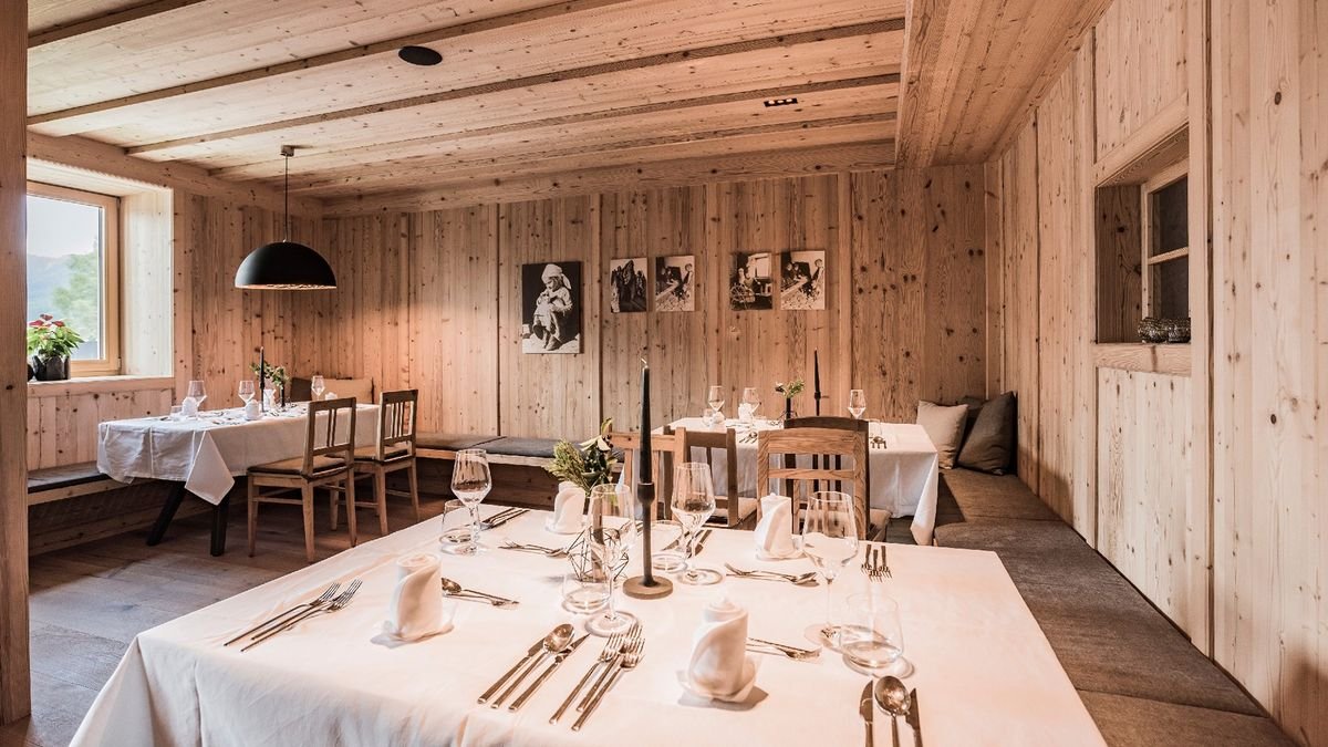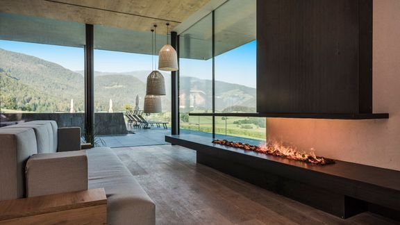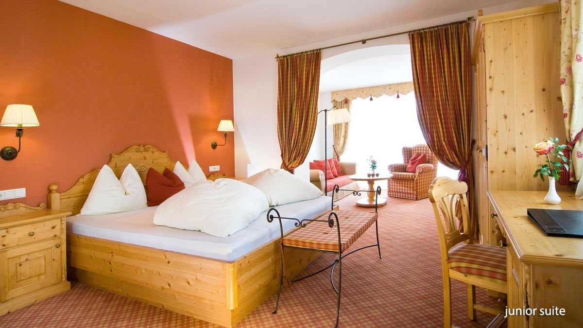 pięciogwiazdkowy, dizajnerski i luksusowy, z przeszkleniami, przez które można podziwiać panoramę górskich szczytów, całkowicie odnowiony w 2017 r., 53 pokoje, 2 nowoczesne budynki, 3 piętra, winda, całodobowa recepcja, 2 restauracje – główna i à la carte, bar; pokój telewizyjny, biblioteka, minikino, taras z widokiem na góry, przechowalnia sprzętu narciarskiego; sala konferencyjna; bezpłatny internet bezprzewodowy; za opłatą: opiekunka do dziecka, parking podziemny (ograniczona liczba miejsc, stacja ładowania pojazdów elektrycznych); akceptowane małe psy (za opłatą: ok. 20 EUR/doba); akceptowane karty kredytowe: Visa, MasterCard, American Express, Diners Club, Maestro; obowiązkowa dopłata za kolację sylwestrową: ok. 85 EUR/os. (płatne na miejscu w hotelu).