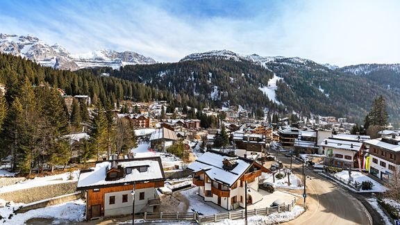 na wysokości ok. 1550 m n.p.m., ok. 250 m od centrum MADONNY DI CAMPIGLIO ze sklepami i restauracjami; ok. 180 km od lotniska w Weronie; ok. 70 km od stacji kolejowej w Trydencie.