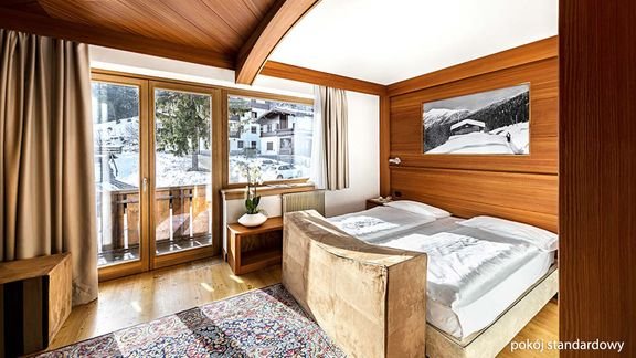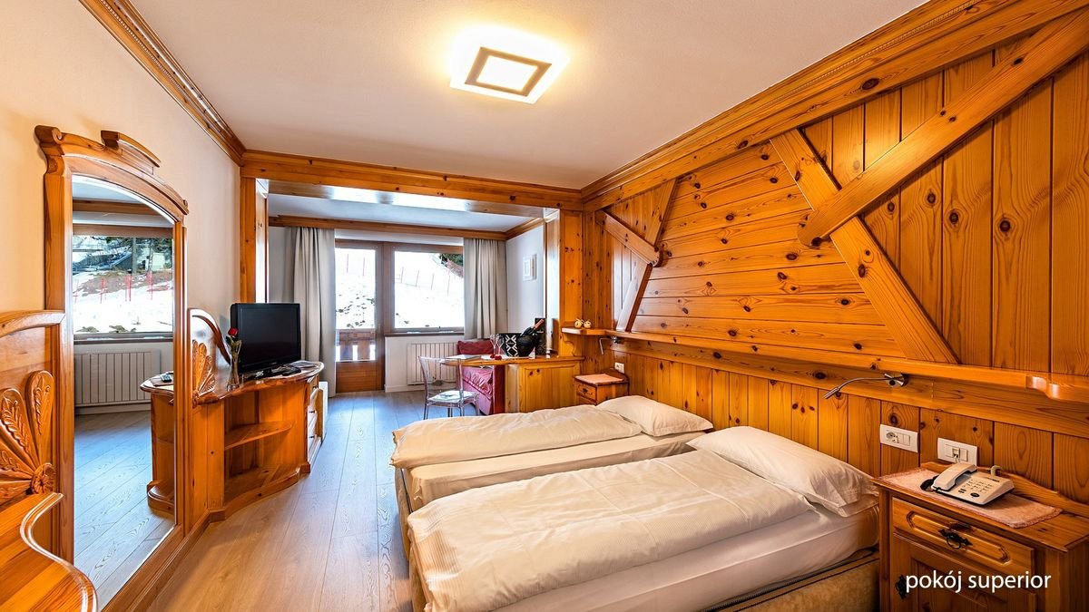czterogwiazdkowy, 36 pokoi, 3 piętra, winda, całodobowa recepcja, restauracja główna – śniadania w formie bufetu, obiadokolacje – wybór z 4 dań, obowiązkowa dopłata do kolacji sylwestrowej (ok. 35 EUR/os., płatne na miejscu), bar; salon z kącikiem telewizyjnym, przechowalnia sprzętu narciarskiego, parking (ograniczona ilość miejsc); bezpłatny internet bezprzewodowy; za opłatą: garaż (na zapytanie przed przyjazdem, ok. 8 EUR/doba); akceptowane karty kredytowe: Visa, MasterCard, American Express, Diners Club.