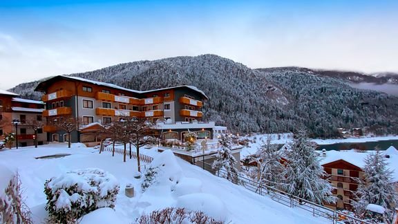 na wysokości ok. 864 m n.p.m., w centrum MOLVENO, ok. 300 m od jeziora Molveno, ok. 4,8 km od Andalo, ok. 40 km od Trydentu; ok. 135 km od lotniska w Weronie, ok. 183 km od lotniska w Bergamo; przystanek autobusowy (linia dalekobieżna) ok. 350 m od hotelu.