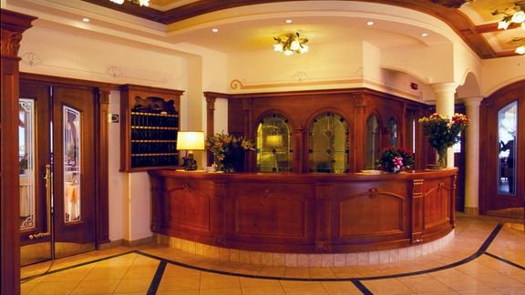 trzygwiazdkowy, 43 pokoje, 1 budynek, 3 piętra, winda, recepcja (czynna: 7.30-24.00), restauracja – dania w formie bufetu (śniadania) lub à la carte (obiady – 3 dania do wyboru), bar; parking (ograniczona ilość miejsc), garaż (na życzenie przed przyjazdem); bezpłatny internet bezprzewodowy; akceptowane psy na zapytanie przed przyjazdem (ok. 7 EUR/noc); akceptowane karty kredytowe: Visa, MasterCard.