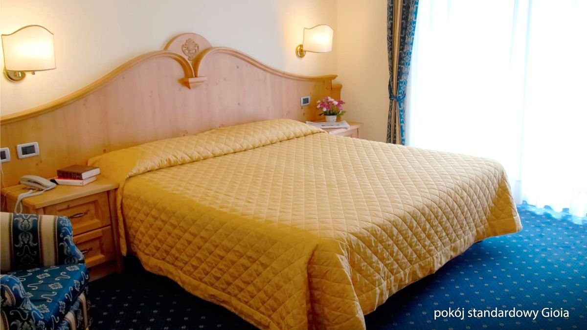 standardowy Gioia: 2-os. (możliwość 1 dostawki), ok. 17 m², łazienka (prysznic, wc; suszarka), internet bezprzewodowy, telewizja satelitarna, telefon, sejf; bezpłatne łóżeczko dla dziecka do 2 lat na zamówienie przed przyjazdem; balkon; standardowy z widokiem na jezioro: 2-os. (możliwość 1 dostawki), ok. 17-20 m², wyposażenie jak w pokoju standardowym; minibar (płatny według konsumpcji); balkon, widok na jezioro; pokój standardowy z widokiem na jezioro za dopłatą.