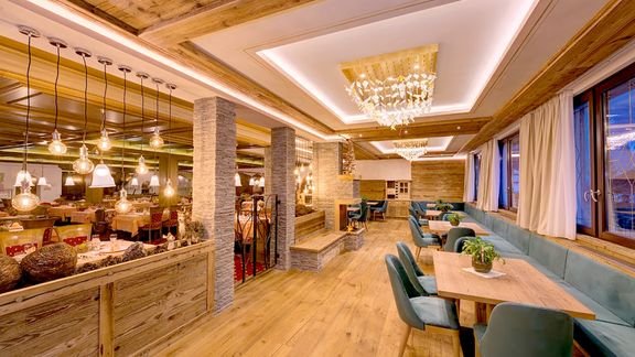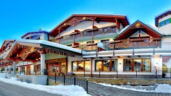czterogwiazdkowy superior, 2 budynki, 3 piętra, winda, przestronne lobby, całodobowa recepcja, restauracja – dania w formie bufetu lub serwowane, 2 bary, tawerna; ogrzewana przechowalnia sprzętu narciarskiego, garaż, parking, biblioteka; centrum konferencyjne dla 80 os., taras, bezpłatny internet bezprzewodowy; za opłatą: pralnia, winiarnia; akceptowane karty kredytowe: Visa, MasterCard, American Express.