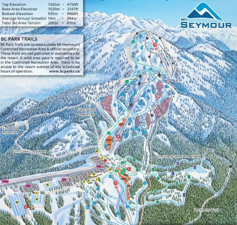 Oferujący malownicze widoki na góry i ocean, ośrodek narciarski Mt Seymour Resort wyróżnia unikatowy, rodzinny charakter. Mt Seymour Resort znany jako świetne miejsce dla osób uczących się jazdy oraz dla tych, którzy chcą po prostu miło spędzić czas w zimowym krajobrazie bez ogromnych tłumów.