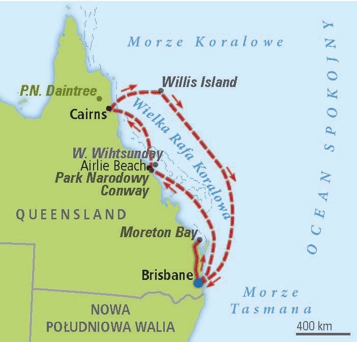 Ok. godz. 7.00 statek cumuje w pobliżu CAIRNS. Położone w tropikalnej północnej części Queensland miasto jest bramą do Wielkiej Rafy Koralowej i Lasu Deszczowego Daintree. To właśnie te dwa obszary wpisane na listę UNESCO sprawiają, że Cairns jest czwartym najchętniej odwiedzanym miejscem w Australii. Warto wybrać się na wyprawę do deszczowego lasu w pobliskiej Kurandzie, do której można dotrzeć spektakularną kolejką linową Skyrail lub malowniczą trasą kolejową Scenic Railway lub rejsem na Green Island – rajską wyspę położoną na Wielkiej Rafie Koralowej, gdzie czeka snurkowanie wśród kolorowych raf i morskiego życia. Czas wolny i uczestnictwo w atrakcjach oferowanych na statku lub zejście na ląd. Fakultatywnie (za dodatkową opłatą) udział w wycieczkach. Wycieczka z opieką polskiego pilota: „Pociągiem przez dżunglę, Kuranda i Kolejka Linowa”. Wycieczka łączy przejazd historyczną kolejką Kuranda Scenic Railway oraz podniebną podróż kolejką linową Skyrail. Trasa prowadzi przez tropikalny las deszczowy wpisany na listę UNESCO, malownicze wodospady, wąwozy i urwiska. W miasteczku Kuranda przewidziany jest czas wolny z możliwością indywidualnego zwiedzania, m.in. Sanktuarium Motyli czy Birdworld. Ważne informacje: trasa obejmuje ok. 1,5 km marszu, w tym schody. Pociąg Kuranda Scenic Railway nie posiada klimatyzacji, Kolejka Skyrail mieści do 6 osób w gondoli i może być czasowo wstrzymana podczas burz, wstęp do Birdworld i Sanktuarium Motyli nie jest wliczony w cenę, sklepy w Kurandzie są nieczynne w poniedziałki i wtorki. Cena wycieczki: ok. 1100 PLN, dzieci do 12 lat ok. 600 PLN. Usługa dostępna na zapytanie pod adresem: rejsy@itaka.pl (wycieczki zgodne z powyższą ofertą nie są dostępne do zakupu podczas rejsu). Ok. godz. 20.00 wypłynięcie z portu w kierunku Willis Islands. Nocleg.
