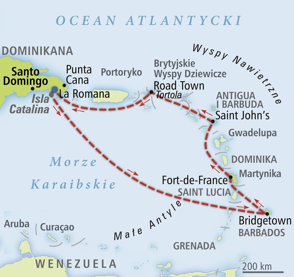 Pozwól porwać się karaibskiej przygodzie i wyrusz w rejs na pokładzie eleganckiego statku MSC Opera, łącząc egzotyczne przygody z beztroskim wypoczynkiem. Na trasie relaks na rajskiej wyspie Isla Catalina, słynącej z białego piasku i pięknej rafy koralowej, kolorowe Barbados, gdzie karaibska swoboda łączy się z brytyjskim dziedzictwem oraz pełne francuskiego uroku Fort-de-France, otoczone tropikalną przyrodą i wulkanicznymi krajobrazami Martyniki. Zachwyć się białymi plażami Antigui i turkusowymi lagunami Tortoli, a na koniec zobacz z czego słynie stolica Dominikany i jedno z najstarszych miast Nowego Świata – Santo Domingo. Podczas rejsu delektuj się beztroskim wypoczynkiem i korzystaj z niezliczonych atrakcji na pokładzie statku MSC Opera: eleganckie wnętrza, wygodne kabiny, szeroki wybór restauracji i barów, luksusowe spa oraz bogata oferta rozrywek sprawią, że ta podróż stanie się prawdziwą przyjemnością.