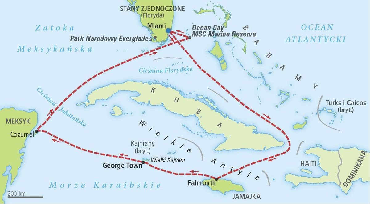 Magia Karaibów, rajska prywatna wyspa, stworzona specjalnie dla Pasażerów MSC, cuda natury i wspaniałe zabytki – to prawdziwy rejs marzeń! Luksusowy statek wycieczkowy MSC Seascape zachwyca przestronnymi i komfortowymi wnętrzami, w których sztuka i elegancja łączą się z ultranowoczesnymi technologiami. Poczuj się jak w ekskluzywnym hotelu z basenami, aquaparkiem, strefą dla dzieci, bogatym programem rozrywkowym i szeroką ofertą barów i restauracji! Podziwiaj widoki na egzotyczne wyspy i poznaj ich różnorodne oblicza, w których można się zakochać. W programie również jeden dzień w magicznym mieście – Miami!