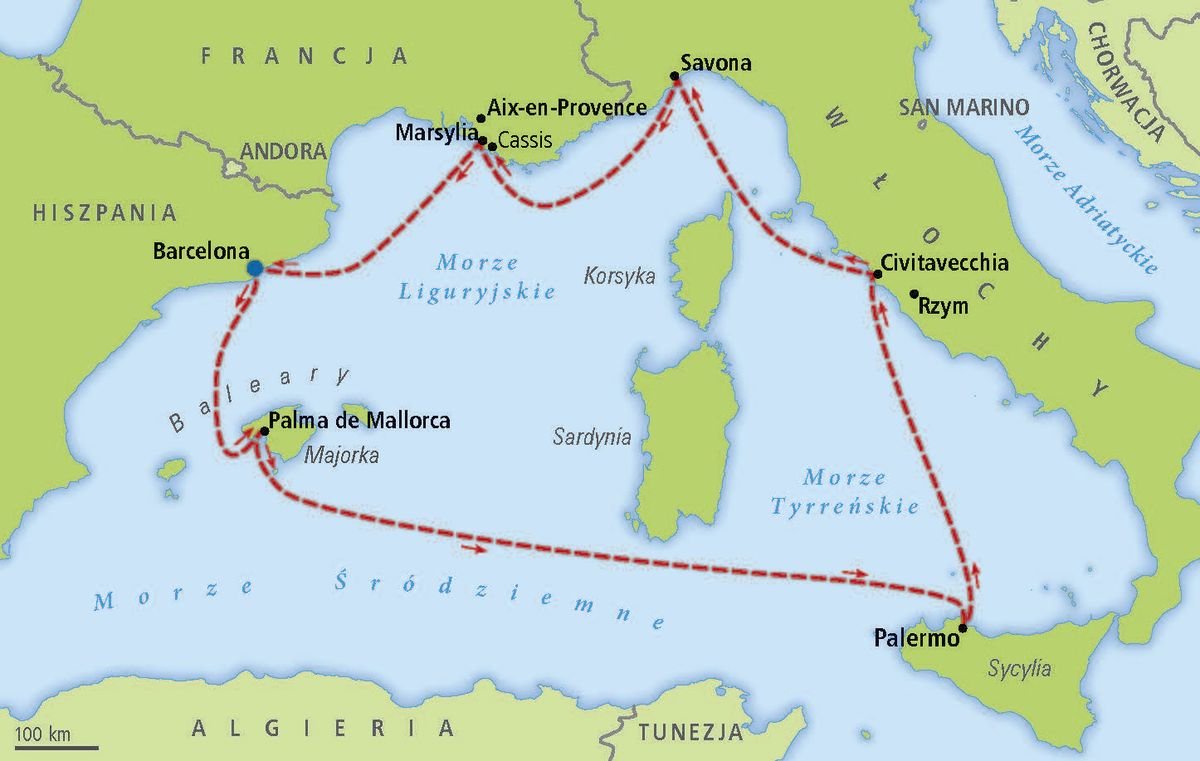 Barcelona • La Goullette • Palermo • Civitavecchia (Rzym) • Savona • Marsylia • Barcelona