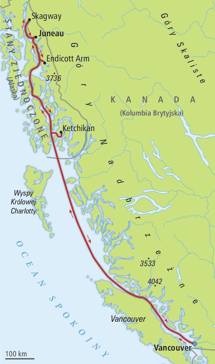 Ok. godz. 7.00 zawinięcie do portu w KETCHIKAN, miasteczku położonym na malowniczej wyspie otoczonej zalesionymi wzgórzami. Znane jako „pierwsze miasto Alaski”, Ketchikan zostało pierwotnie założone jako indiańska osada rybacka, a dziś może pochwalić się najstarszą na świecie kolekcją indiańskich totemów, które można podziwiać w Totem Heritage Center. Czas wolny i uczestnictwo w atrakcjach oferowanych na statku lub zejście na ląd. Fakultatywnie (za dodatkową opłatą) udział w wycieczkach. Wycieczka z opieką polskiego pilota „Wędrówka po lesie deszczowym" to ok. 4-godzinna przygoda rozpoczynająca się od motorowego pontonu Seahawk, aby odbyć krótki, ale ekscytujący rejs po wybrzeżu Clover Passage. W trakcie podróży możliwość zaobserwowania wielorybów, lwów morskich Steller’a, fok, bielików amerykańskich i migrujących ptaków morskich. Po dopłynięciu na odosobnioną plażę spacer za przewodnikiem przez pradawny Tongass National Forest, który jest domem dla różnorodnych zwierząt, takich jak niedźwiedzie, orły, wilki i łabędzie trębacze. Można zobaczyć zachodnie cedry czerwone oraz cedry żółte, które były wykorzystywane przez rdzennych mieszkańców do duchowego wzbogacenia, schronienia i transportu. Dobrze utrzymany szlak ma długość ok. 1,6 km i głównie prowadzi po drewnianych chodnikach. Po wędrówce po łagodnym, historycznym szlaku, czas na odpoczynek oraz degustację lokalnych przekąsek. Minimalna waga uczestnikjów to 18 kg. Obowiązkowa, zalecana ciepła odzież i solidne buty. Organizator zapewnia odzież przeciwdeszczową, kamizelkę ratunkową oraz lekką przekąskę. Wysoka trudność. Wycieczka odbywa się na podstawie specjalnego zezwolenia wydanego przez U.S. Forest Service. Cena wycieczki: 1390 PLN, dzieci do 12 lat: 870 PLN. Usługa dostępna na zapytanie pod adresem: rejsy@itaka.pl (wycieczki zgodne z powyższą ofertą nie są dostępne do zakupu podczas rejsu). Ok. godz. 18.00 wypłynięcie z portu w kierunku Vancouver. Nocleg.