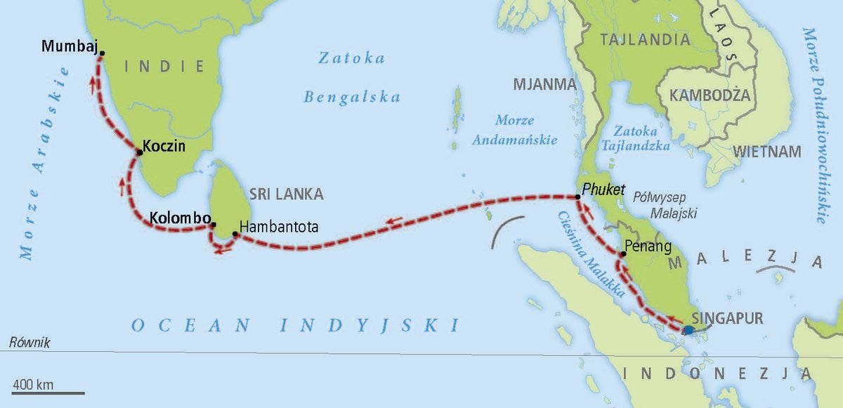 Niezwykły rejs, podczas którego zobaczysz hipernowoczesny Singapur, egzotyczne wyspy Malezji i Tajlandii oraz klimatyczny i smakowity port Sri Lanki. Wejdź na pokład eleganckiego i komfortowego statku Celebrity Millennium, pierwszego na świecie zasilanego przez ciche i niewidzielające dymu turbiny gazowe i pozwól zabrać się w podróż pełną niezapomnianych wrażeń! Pełen atrakcji pokład z basenami i jacuzzi, profesjonalne centrum spa i fitness oraz wnętrza, do których wystroju wykorzystano wysokiej jakości drewno, marmur i szkło zachwycają i zadziwiają. Spędź niezapomniane chwile podczas rejsu, podziwiaj zapierające dech widoki i zwiedzaj, zwiedzaj, zwiedzaj! Na koniec pelne koloru i kontrastów miasta Indii - Kolombo, dawna stolica, Koczin, czyli mieszanka różnych kultur i religii oraz magiczny Mumbaj, symbol nowoczesności i największy na świecie ośrodek przemysłu filmowego. Zapraszamy na pokład!