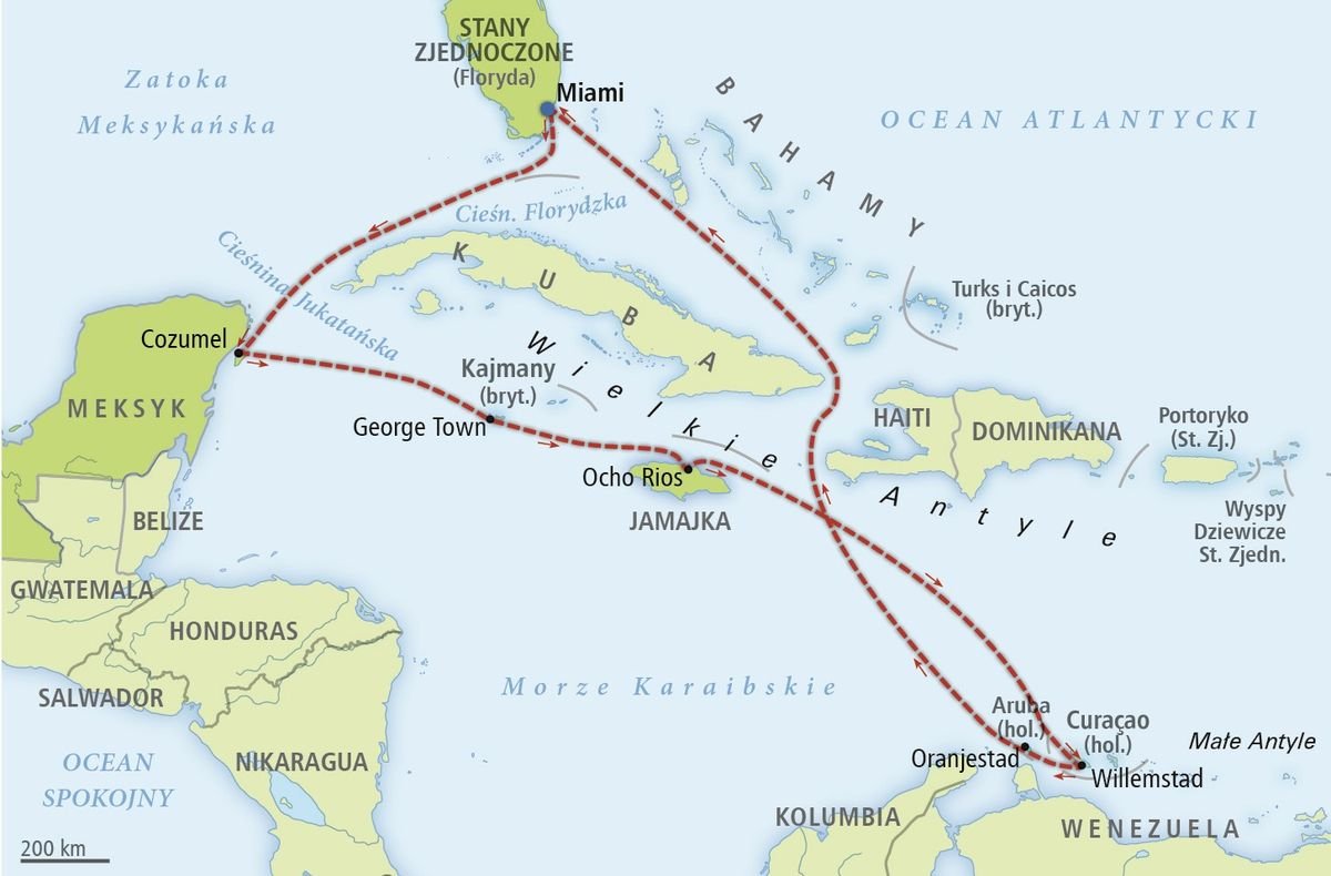 Ok. godz. 8.00 zawinięcie do portu w ORANJESTAD na Arubie – tętniącej życiem stolicy jednej z najpiękniejszych karaibskich wysp należących do Królestwa Niderlandów. Miasto zachwyca kolonialną architekturą w pastelowych kolorach, licznymi sklepami wolnocłowymi oraz tropikalną atmosferą. Aruba słynie z szerokich, białych plaż i turkusowego morza, a także z niemal bezchmurnej pogody przez cały rok. Czas wolny i uczestnictwo w atrakcjach oferowanych na statku lub zejście na ląd. Fakultatywnie (za dodatkową opłatą) udział w wycieczkach. Wycieczka „Aruba – najważniejsze atrakcje” z opieką polskiego pilota, rozpoczyna się przejazdem przez tętniącą kolorami stolicę Oranjestad, a następnie kieruje się ku słynnej latarni California Lighthouse. Kolejnym przystankiem jest urokliwa kaplica Alto Vista, miejsce, w którym – według legend – lokalni Indianie przyjęli chrześcijaństwo. Dalsza trasa prowadzi ku malowniczemu północnemu wybrzeżu, gdzie podziwiać można imponujący, zawalony Natural Bridge oraz jego mniejszą wersję, Baby Natural Bridge. Ostatnim punktem programu jest Aloe Factory. W drodze powrotnej istnieje możliwość wysiadki w centrum miasta (zaledwie 5 minut spacerem od terminalu wycieczkowego) lub bezpośredniego powrotu na statek. Ok. godz. 17.00 wypłynięcie z portu w kierunku Miami. Nocleg.