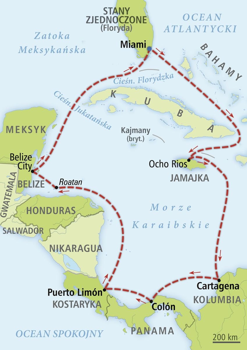 Ok. godz. 7.00 zawinięcie do portu w BELIZE CITY w Belize – największym mieście kraju, położonym nad wodami Morza Karaibskiego i stanowiącym bramę do jednych z najpiękniejszych raf koralowych na świecie. Belize City zachwyca kolonialną architekturą, karaibskim klimatem i wyjątkową mieszanką kultur. W pobliżu znajduje się słynna Belize Barrier Reef – druga, co do wielkości rafa koralowa na świecie, idealna do snurkowania i podziwiania kolorowego podwodnego świata. Region ten oferuje również możliwość odkrywania starożytnych ruin Majów, takich jak Altun Ha, ukrytych w tropikalnej dżungli, oraz rejsów rzekami wśród egzotycznej przyrody. Czas wolny i uczestnictwo w atrakcjach oferowanych na statku lub zejście na ląd. Fakultatywnie (za dodatkową opłatą) udział w wycieczkach. Ok. godz. 15.00 wypłynięcie z portu w kierunku Miami. Nocleg.