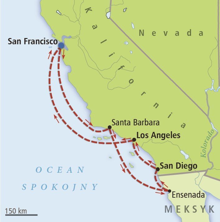 Ok. godz. 8.00 zawinięcie do portu w LOS ANGELES. W najludniejszym mieście stanu Kalifornia, powietrze pachnie egzotycznymi kwiatami, a różnorodna muzyka wylewa się dosłownie z każdego zakątka. Miejsce tętni życiem, dodaje energii i nie pozwala się nudzić. Uczucie wakacyjnej beztroski wzmacnia klimat panujący w Mieście Aniołów. Czas wolny i uczestnictwo w atrakcjach oferowanych na statku lub zejście na ląd. Fakultatywnie (za dodatkową opłatą) udział w wycieczkach. Wycieczka z udziałem polskiego pilota (grupy międzynarodowe) - Chiński Teatr TCL, Hollywood i Farmers Market. 5-godzinna wycieczka z przewodnikiem obejmuje najważniejsze atrakcje turystyczne Los Angeles. W programie uwzględniono czas wolny na zakupy i lunch we własnym zakresie. Przejazd autokarem do centrum miasta, skąd można podziwiać m.in. salę koncertową Walt Disney Concert Hall zaprojektowaną przez Franka Gehry’ego, Grand Park oraz ratusz miasta Los Angeles (City Hall). Kolejnym punktem programu jest Hollywood Boulevard, gdzie znajdują się Dolby Theatre oraz Chiński Teatr TCL (dawniej Grauman’s Chinese Theatre). Na miejscu można stanąć w odciskach stóp i dłoni gwiazd takich jak Marilyn Monroe, Frank Sinatra czy Tom Hanks, a także przespacerować się Aleją Gwiazd, na której upamiętniono ponad 2 500 postaci ze świata rozrywki. Następnie przejazd przez legendarny Sunset Strip – dzielnicę znaną z barwnego życia nocnego i powiązań ze światem celebrytów. Postój na lunch zaplanowany na kultowym Farmers Market. Po zakończeniu programu powrót autokarem do portu. Usługa dostępna na zapytanie pod adresem: rejsy@itaka.pl, nie później niż 30 dni przed wyjazdem (wycieczki zgodne z powyższą ofertą nie są dostępne do zakupu podczas rejsu). Ok. godz. 19.00 wypłynięcie z portu w kierunku San Francisco. Nocleg.