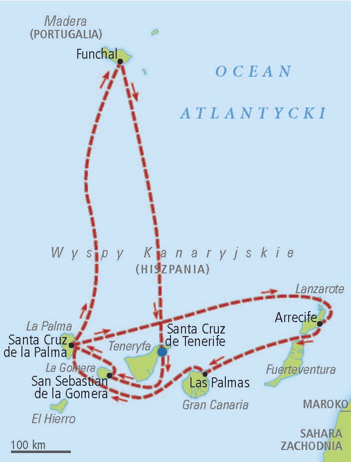 Ok. godz. 8.00 zawinięcie do portu w SANTA CRUZ DE LA PALMA, urokliwej stolicy La Palmy, słynnej z kolorowych balkonów i kolonialnych kamienic skoncentrowanych przy głównej ulicy handlowej Calle O’Dal. Jedną z głównych atrakcji miejscowości jest renesansowa Plaza de España, gdzie znajduje się m.in. ratusz z XVI w. i budynek Uniwersytetu Otwartego. Czas wolny i uczestnictwo w atrakcjach oferowanych na statku lub zejście na ląd. Fakultatywnie (za dodatkową opłatą) udział w wycieczkach. Wycieczka z opieką polskiego pilota „Zakątki Santa Cruz”. Ok. 2,5-godzinna wycieczka to okazja do odkrycia wulkanicznego Santa Cruz de la Palma – miasta, w którym kolonialna architektura przeplata się z bogatą historią i sztuką. Spacer po starówce prowadzi wśród brukowanych uliczek, kolorowych fasad i drewnianych balkonów, przypominających o czasach, gdy Santa Cruz było ważnym portem dla kupców płynących do Ameryki. Podziwiać można również przykłady flamandzkiej sztuki sakralnej. Finałem spaceru jest degustacja lokalnego ciasta w towarzystwie „barraquito” – kawy z dodatkiem likieru, mleka i przypraw. Usługę dodasz w procesie rezerwacji lub w Strefie Klienta (wycieczki zgodne z powyższą ofertą nie są dostępne do zakupu podczas rejsu). Ok. godz. 17.00 wypłynięcie z portu w kierunku Lanzarote. Nocleg.