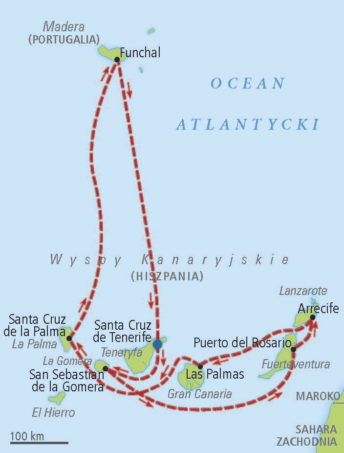 Ok. godz. 10.00 zawinięcie do portu w SANTA CRUZ DE TENERIFE. Wyokrętowanie ze statku. Transfer na lotnisko w Reina Sofia. Przelot do Polski.