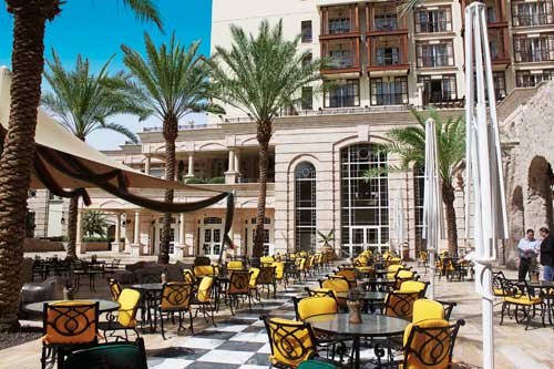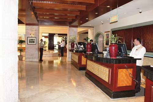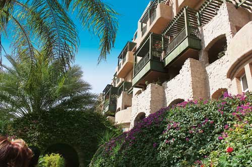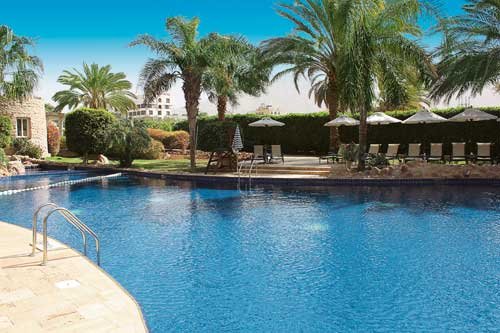 pięciogwiazdkowy, elegancki, zbudowany w 2000 r., sezonowo odnawiany, 296 pokoi, budynek główny oraz kilka budynków po drugiej stronie ulicy (przejście pomostem nad ulicą), do 4 pięter, kilka wind, przestronne i eleganckie lobby, całodobowa recepcja, restauracja główna Palm Court z tarasem - dania w formie bufetu, obsługa kelnerska, kuchnia międzynarodowa, dostępne foteliki i menu dla dzieci, dania wegetariańskie, restauracje à la carte: Al Sufra - kuchnia śródziemnomorska, Al Shatt, Red Sea Grill (czynna w sezonie letnim) - owoce morza; bary: Abu Nawwas Pub, Al Nafoura, Bridge Cafe, Bakery Shop & Cafe, kącik z fajką wodną, kantor, sala telewizyjna, mały pasaż handlowy, jubiler; centrum konferencyjne dla 550 osób, taras z widokiem na baseny i morze, ogród; za opłatą: punkt internetowy (ok. 10 USD/godz.), internet bezprzewodowy (ok. 10 USD/godz.), całodobowy room-service, lekarz na wezwanie, opiekunka do dziecka (na zamówienie), pralnia, wypożyczalnia samochodów; akceptowane karty kredytowe: Visa, MasterCard, American Express, Diners Club.