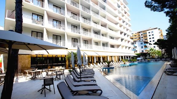 Czas na Albanię – destynację, która coraz częściej pojawia się na listach „must see” turystów całego świata! Zadbany hotel, chwalony za czystość, położony jest kilka kroków od plaży, gdzie można spokojnie spędzić dzień opalając się i cieszyć się wakacjami. Znajdziesz tu również 2 baseny, w tym 1 na dachu, skąd rozpościera się fantastyczny widok na morze – to świetne miejsce na romantyczny odpoczynek przy zachodzie słońca.