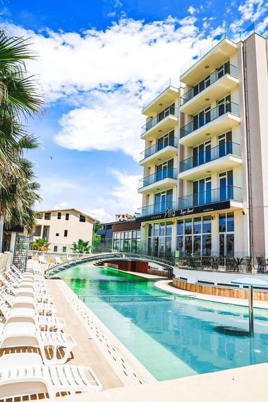 Hotel położony w cichym i malowniczym miejscu, bezpośrednio przy szerokiej i piaszczystej plaży, to doskonała propozycja dla wszystkich, którzy stawiają na błogi wypoczynek w promieniach albańskiego słońca. Na miejscu, do dyspozycji Gości przygotowano restaurację i bar, a także basen z wydzieloną częścią dla dzieci. Po dniu wypełnionym ulubionymi wakacyjnymi atrakcjami, wypocznij w komfortowych i funkcjonalnie urządzonych pokojach.