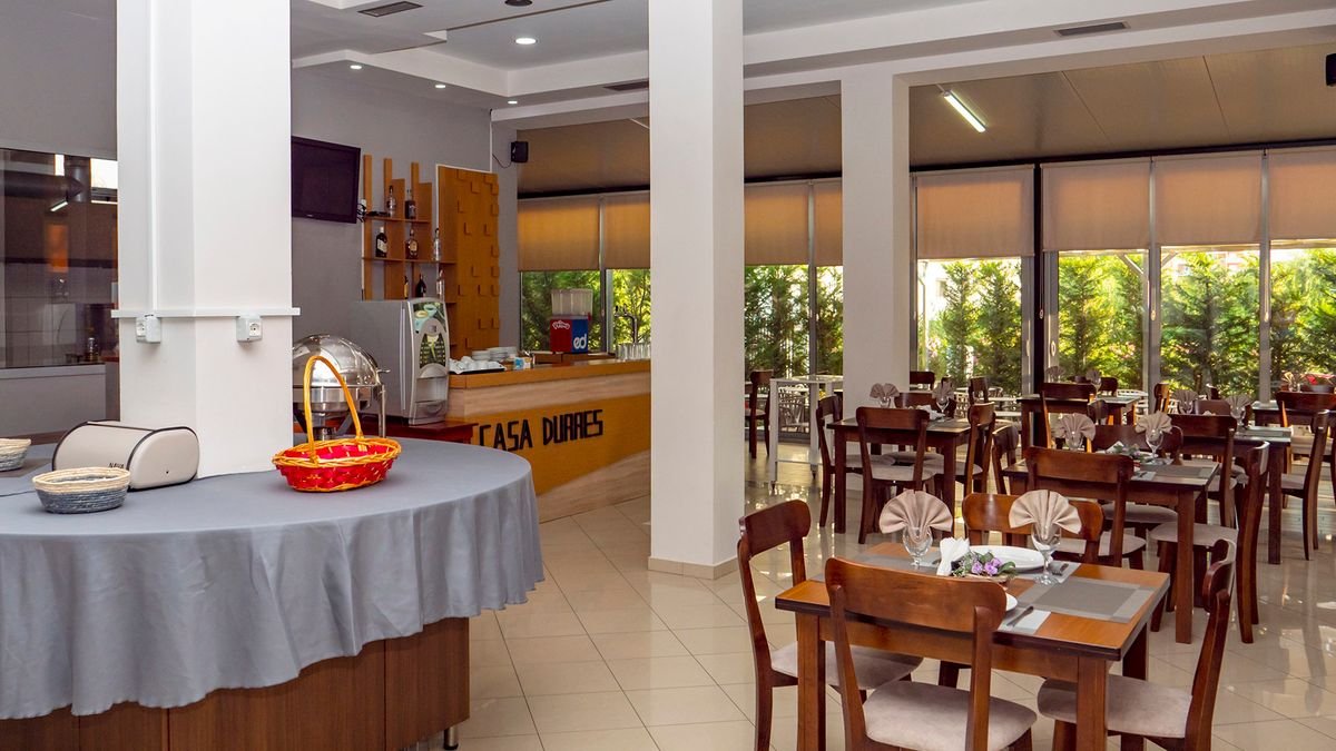 trzygwiazdkowy, nowoczesny, zbudowany w 2000 r., całkowicie odnowiony w 2018 r., 42 pokoje, 1 budynek, 3 piętra, winda, lobby, całodobowa recepcja, restauracja – dania w formie bufetu, kuchnia albańska i międzynarodowa, dostępne dania wegetariańskie, bar przy basenie; wymiana walut, taras z widokiem na ogród, ogród; bezpłatny internet bezprzewodowy; na terenie hotelu występują różnice poziomów i schody – nie jest polecany osobom z ograniczeniami ruchowymi; akceptowane karty kredytowe: Visa, MasterCard, American Express; hotel przyjmuje tylko gości powyżej 18. roku życia.