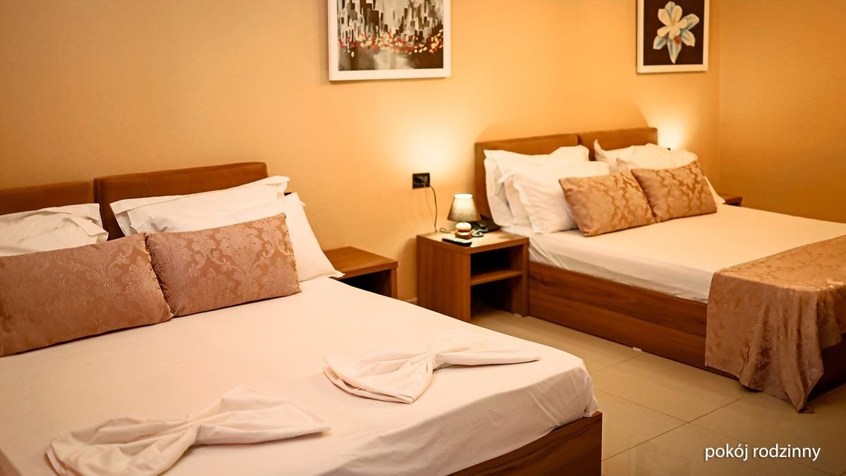 Otoczony zielonym laskiem, położony w Golem i bezpośrednio przy piaszczystej plaży jest doskonałym miejscem dla osób, które chcą spędzić wakacje w spokojnej, kameralnej atmosferze i wypocząć na plaży lub przy basenie. Do dyspozycji Gości są 2 restauracje serwujące kuchnię albańską i włoską oraz 4 bary, w tym przy plaży i przy basenie. Hotel oferuje wygodne pokoje standardowe i przestronne pokoje rodzinne dla 4 osób, na miejscu można bezpłatnie skorzystać z bezprzewodowego internetu.