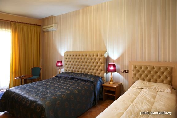 standardowy: 2-os. (możliwość 1 dostawki), ok. 24 m², skromny, indywidualnie sterowana klimatyzacja, łazienka (wanna lub prysznic, wc; suszarka), telewizja satelitarna; bezpłatne łóżeczko dla dziecka do 2 lat na zamówienie przed przyjazdem; balkon lub taras (stolik i krzesełka); rodzinny: 2-os. (możliwość 2 dostawek, sofa), ok. 32 m²; wyposażenie jak w pokoju standardowym; balkon lub taras (stolik i krzesełka); pokój rodzinny za dopłatą.