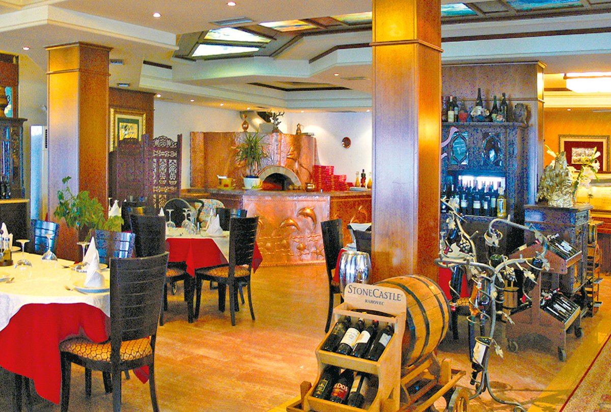 śniadanie (7.30-9.30), obiad (12.30-14.00), kolacja (19.30-21.30) w formie bufetu w restauracji; napoje bezalkoholowe i alkoholowe: koniak, wino, piwo, rakija w barze (10.30-22.00).