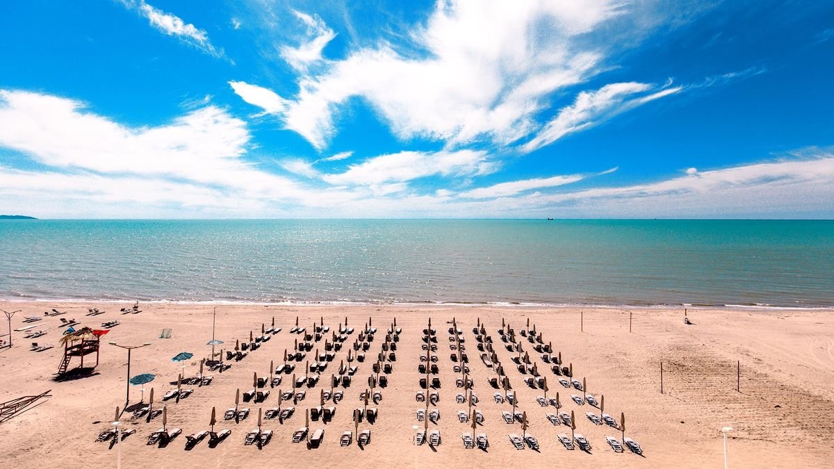 Stylowy i nowoczesny, zachwyca nie tylko dizajnem, ale również idealną lokalizacją! Położony tuż przy plaży, z widokiem na morze, z łatwym dojazdem do centrum Durres – największego, albańskiego kurortu. Uwagę przyciągają tu wnętrza w kolorach natury oraz wyjatkowo komfortowe i urządzone w zgodzie z najnowszymi trendami pokoje. Do dyspozycji Gości są 2 restauracje i bary oraz taras z zapierającym dech widokiem. Czas wolny płynie tu leniwie przy basenie, polecamy również spędzić dzień na pięknej, piaszczystej plaży z serwisem. Tylko kilka kroków stąd do przystanku autobusowego, więc wygodnie dojedziesz do celu i zwiedzisz najpiękniejsze zakątki miasta i okolic.