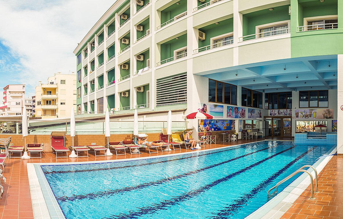 czterogwiazdkowy, zbudowany w 2000 r., odnowiony w 2012 r., 73 pokoje, 1 budynek, 5 pięter, winda, hol, całodobowa recepcja, restauracja – dania w formie bufetu, kuchnia międzynarodowa, albańska i włoska, dania wegetariańskie, dostępne foteliki dla dzieci, bar Vivas; parking; sala konferencyjna dla 50 os., bezpłatny internet bezprzewodowy w lobby; za opłatą: pralnia; akceptowane karty kredytowe: Visa.