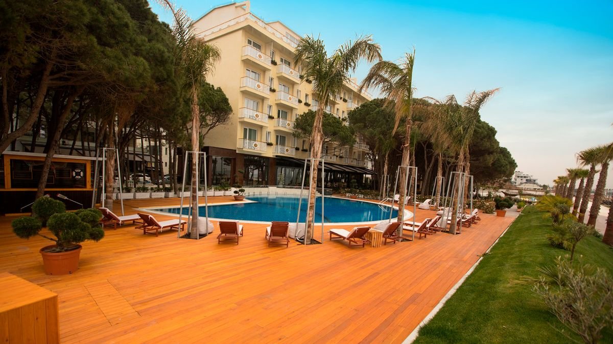 Położony tuż przy piaszczystej plaży, to doskonały wybór na wypoczynek w gronie rodziny i przyjaciół. Na miejscu jest przyjemny basen z wydzieloną częścią dla dzieci i tarasem do opalania, skąd można delektować się fantastycznym widokiem na morze. Goście mają także do dyspozycji wygodne, nowocześnie urządzone pokoje, restaurację z kuchnią lokalną i międzynarodową oraz bar. Warto zarezerwować czas na wycieczkę do pobliskiego Durrës z mnóstwem ciekawych zabytków.