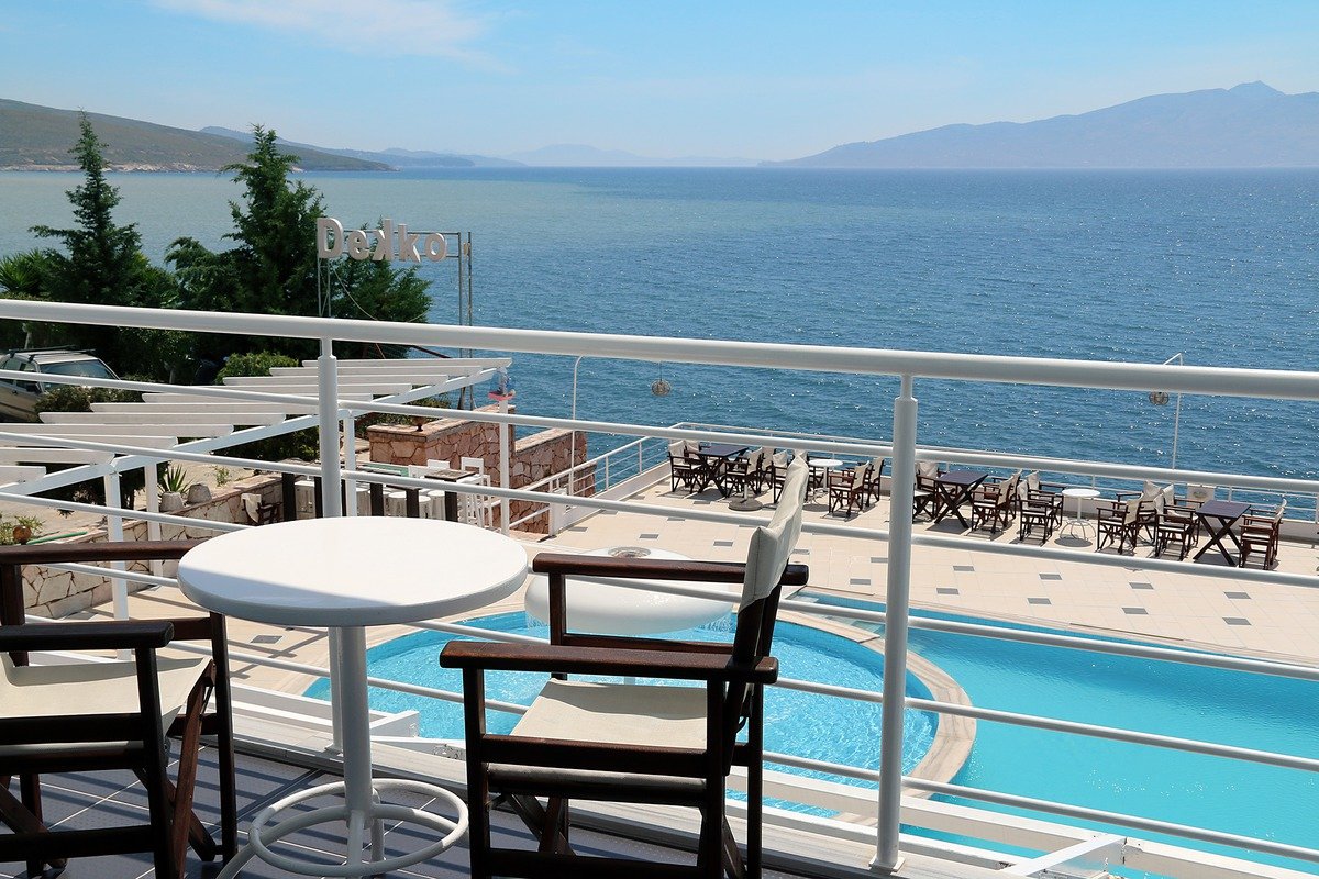 Niedawno oddany do użytku, oferuje wszystkie wygody i komfortowy pobyt w nowoczesnych i eleganckich pokojach. Hotel leży nad samym morzem, do którego można zejść schodkami. Alternatywą jest basen z częścią dla dzieci i tarasem, skąd można podziwiać piękny widok na morze i Sarandę, a także niezapomniane zachody słońca. Wszystkie pokoje są gustownie urządzone i mają balkony z widokiem na morze i basen.