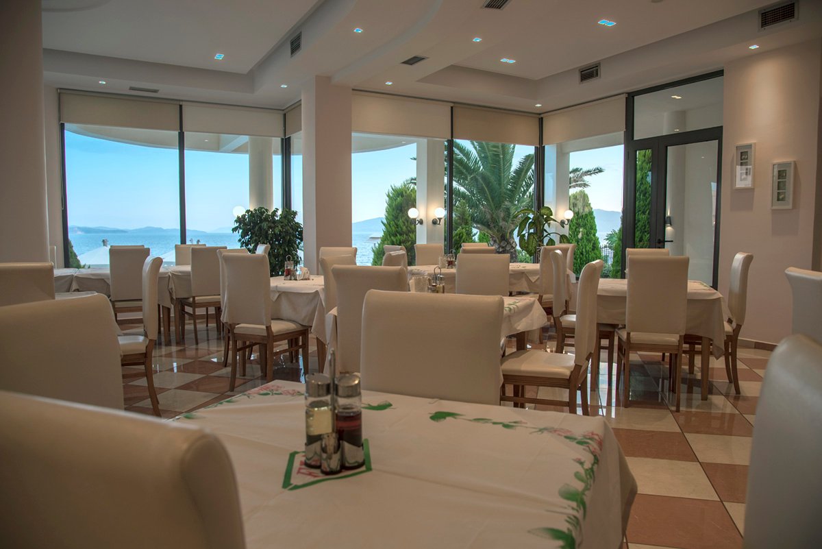 czterogwiazdkowy, elegancki i zadbany, zbudowany w 2001 r., wyremontowany w 2019 r., 36 pokoi, 1 budynek, 3 piętra, hol, całodobowa recepcja; restauracja – dania serwowane, kuchnia międzynarodowa, dostępne foteliki dla dzieci, restauracja à la carte (nieobjęta formułą all inclusive), bar przy basenie; taras z widokiem na morze, nieduży ogród, bezpłatny internet bezprzewodowy; na terenach hotelowych występują różnice poziomów i schody – nie jest polecany osobom z ograniczeniami ruchowymi; akceptowane karty kredytowe: Visa, MasterCard.