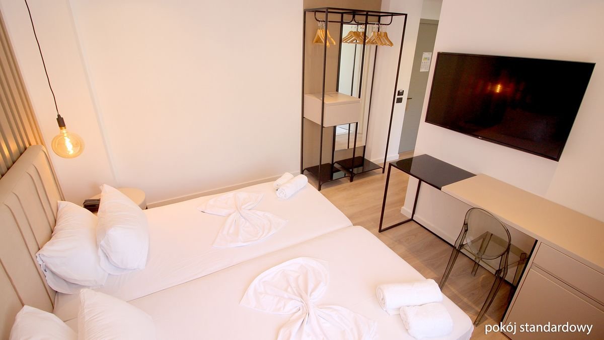 standardowy: 2-os. (możliwość 1 lub 2 dostawkek dla dzieci), ok. 18-20 m², zadbany, indywidualnie sterowana klimatyzacja, łazienka (prysznic, wc; suszarka), telewizja satelitarna, lodówka, telefon, sejf; bezpłatne łóżeczko dla dziecka do 2 lat na zamówienie przed przyjazdem; część pokoi z balkonem (stolik i krzesełka), boczny lub frontalny widok na morze; suite: 3-os. (możliwość 1 lub 2 dostawek), ok. 50 m², wyposażenie jak w pokoju standardowym, dodatkowo: 2 osobne sypialnie; suite na zamówienie, za dopłatą.