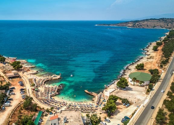 Sunset, publiczna, kamienista, zejście do morza schodami lub po drabince, ok. 100 m od hotelu, dojście drogą, parasole i leżaki płatne (ok. 500-700 ALL/parasol i 2 leżaki); Artur, publiczna, piaszczysto-żwirkowa, łagodne zejście do morza, ok. 100 m od hotelu, dojście drogą, parasole i leżaki płatne (ok. 500-700 ALL/parasol i 2 leżaki).