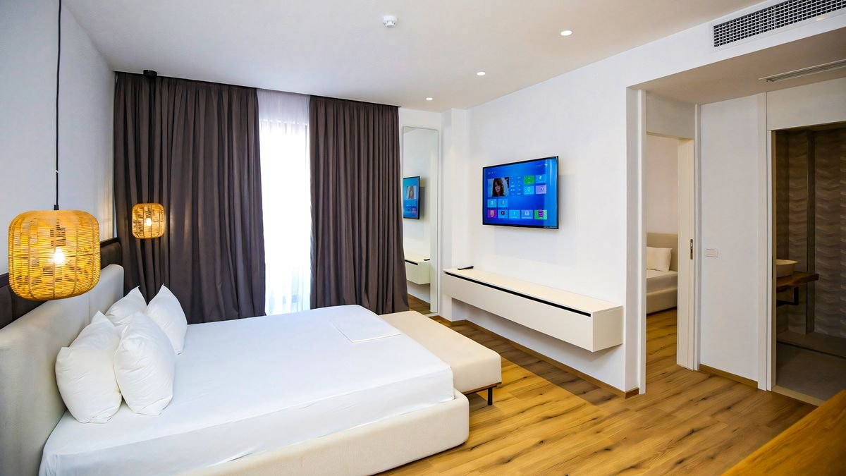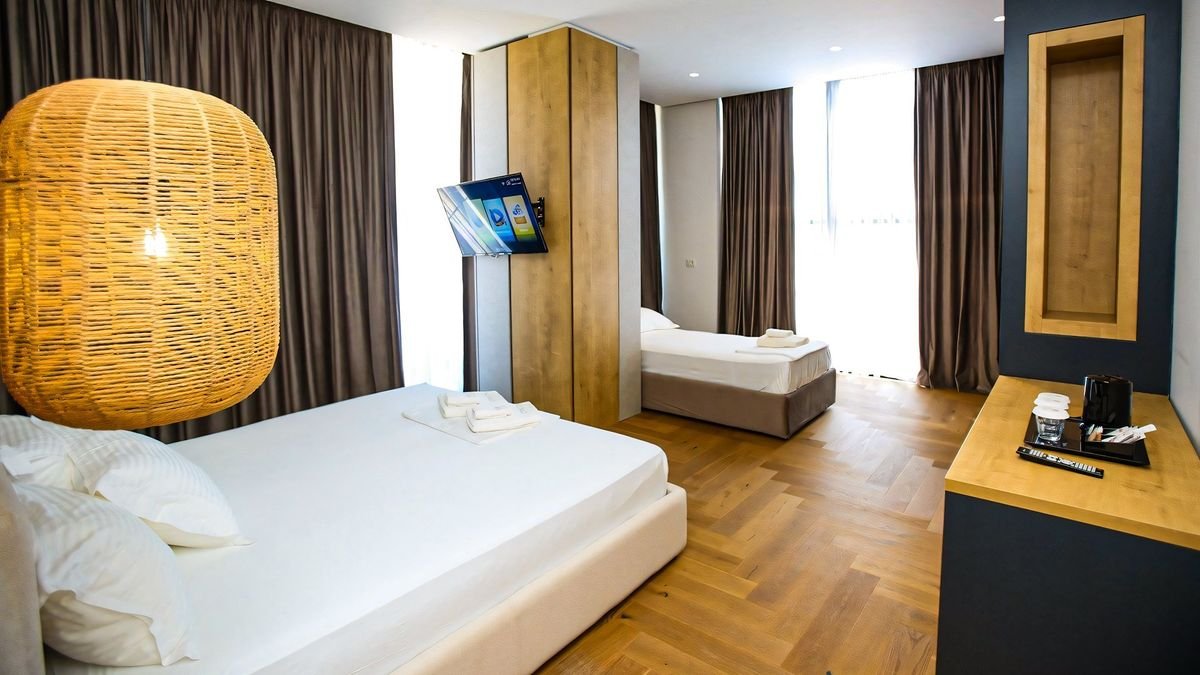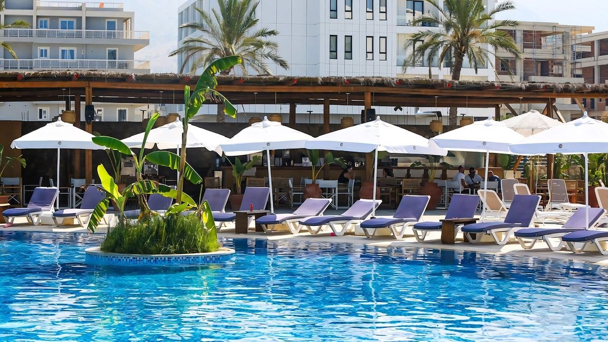 Malownicze widoki na góry i morze, porośnięty palmami ogród i plaża z wydzieloną częścią hotelową oraz bezpłatnym serwisem na wyciągnięcie ręki – witamy w hotelu na słonecznej Albanii! Nowoczesny i stylowy, idealny zarówno na rodzinny wyjazd, jak i urlop we dwoje, oferuje przestronne, dobrze wyposażone pokoje, atrakcje dla osób w każdym wieku i wspaniałą, wakacyjną atmosferę. Zrelaksuj się przy jednym z 2 ładnie zaaranżowanych basenów, poćwicz na siłowni albo weź udział w ciekawych zajęciach z animatorami, podczas gdy Twoje dziecko będzie beztrosko bawić się w przygotowanym z myślą o najmłodszych basenie lub w miniklubie. Całość udanego wypoczynku uświetni znana i lubiana formuła all inclusive i serdeczna obsługa, która chętnie służy radą i pomocą.