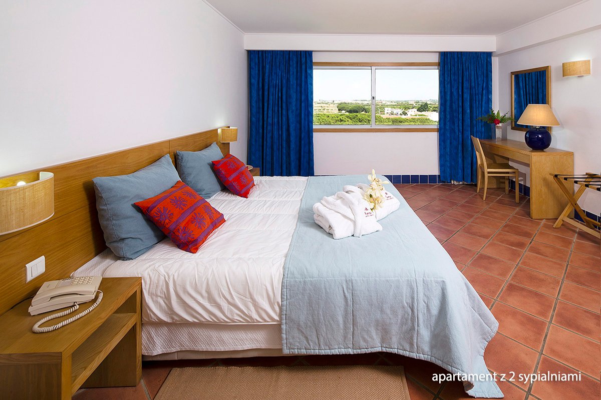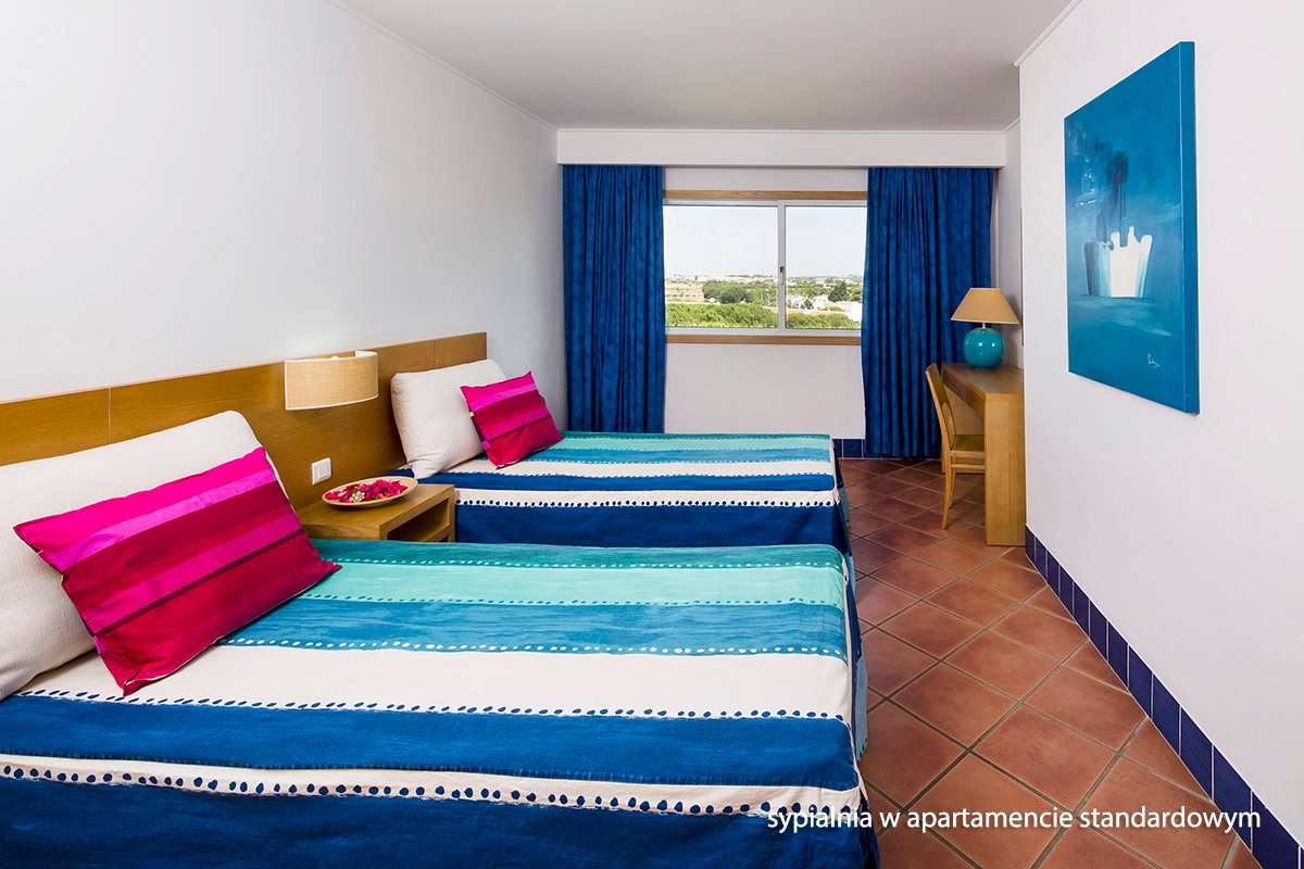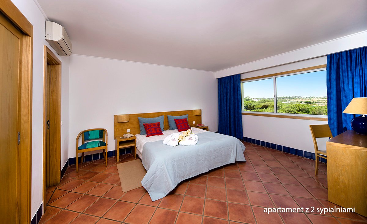 Świetne miejsce na pełne portugalskiego słońca wakacje z rodziną. Położony w otoczeniu lasów piniowych, z dala od zgiełku miasta, jest oazą spokoju. Na miejscu są dwa baseny i brodziki dla dzieci, w ciągu dnia prowadzone są animacje dla dorosłych i dzieciaków – zajęcia sportowe i zabawy. Do dyspozycji Gości są elegancka restauracja serwująca potrawy kuchni międzynarodowej i portugalskiej oraz dwa bary. Urozmaicone posiłki w ramach formuły all inclusive nie znudzą się nawet łasuchom. W przestronnych i nowocześnie wyposażonych apartamentach wygodnie wypocznie czteroosobowa rodzina. Warto wybrać się na plażę Falesia, jedną z piękniejszych na południowym wybrzeżu Portugalii, z charakterystycznymi pomarańczowymi klifami.