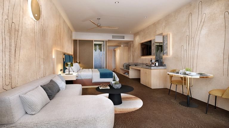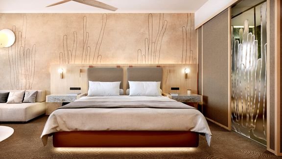 Odkryj piękno Aruby! Zatrzymaj się w wyjątkowym miejscu, przeznaczonym wyłącznie dla dorosłych, gdzie nowoczesny styl w połączeniu z tropikalnym klimatem tworzą niezwykłą atmosferę – to prawdziwa perełka Karaibów! W ciągu dnia zrelaksuj się na leżaku przy jednym z 3 basenów w otoczeniu palmowej roślinności, a następnie pozwól sobie na orzeźwiającą kąpiel, aby odpocząć od słońca, które będzie Ci towarzyszyć przez większość pobytu. Skorzystaj z różnorodnej oferty kulinarnej dostępnej w kilku restauracjach, od dań kuchni międzynarodowej po japońskie przysmaki. Pomysł na wieczór? Delektuj się koktajlem, weź udział w lekcjach tańca lub wybierz się na wycieczkę, aby zwiedzić urokliwą okolicę – tutaj każdy znajdzie coś dla siebie! Prezentowany materiał graficzny przedstawia wizualizację obiektu.